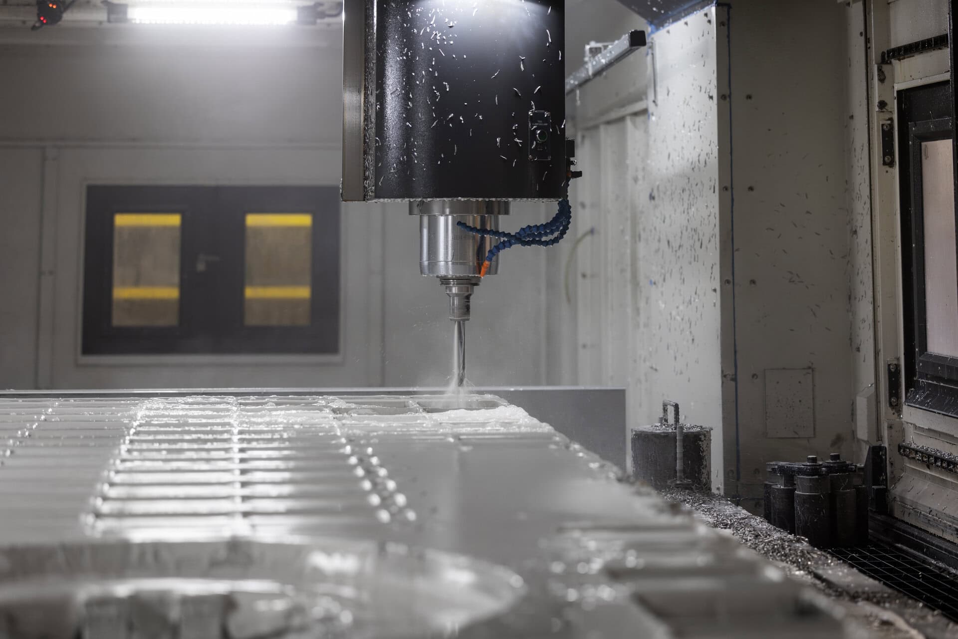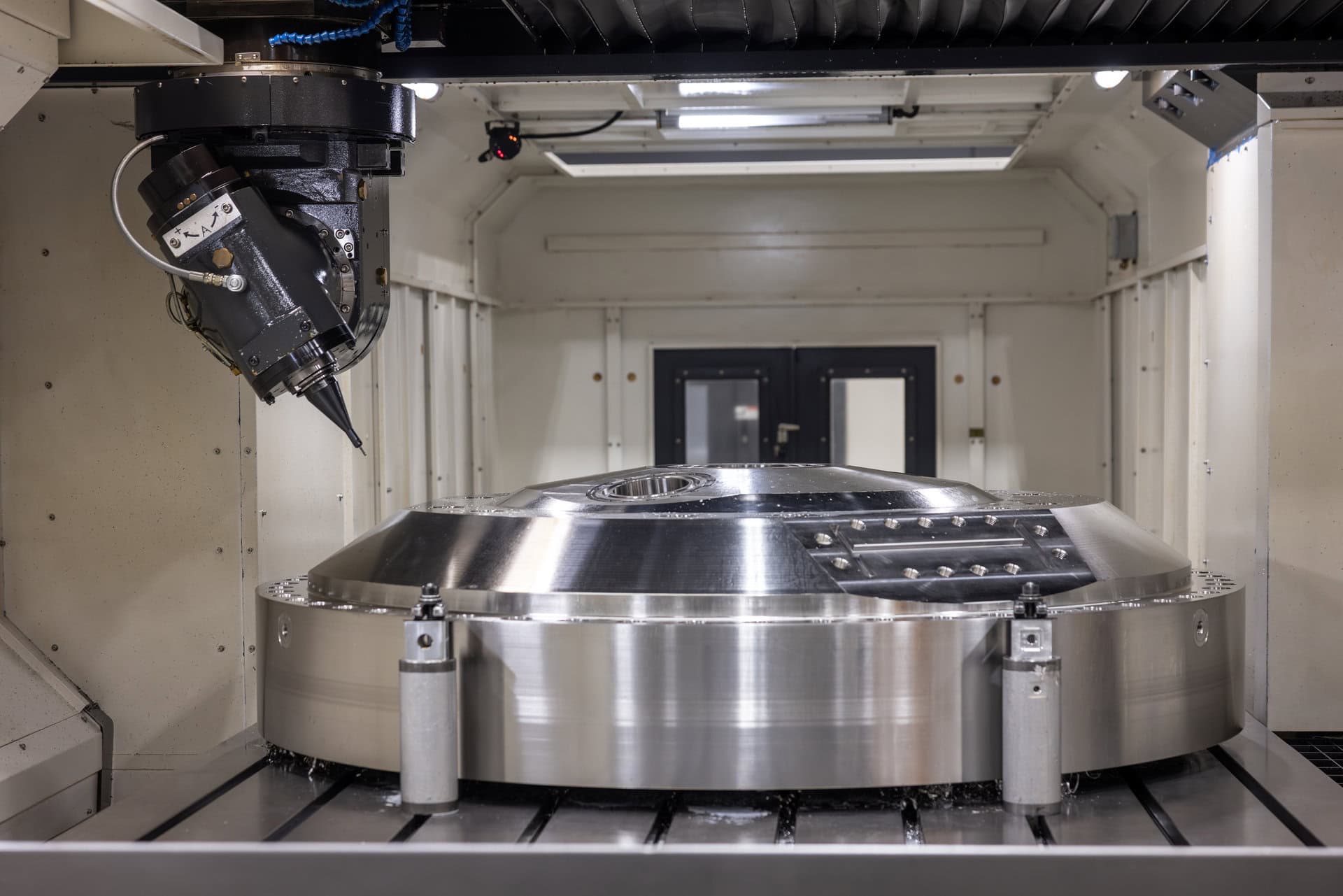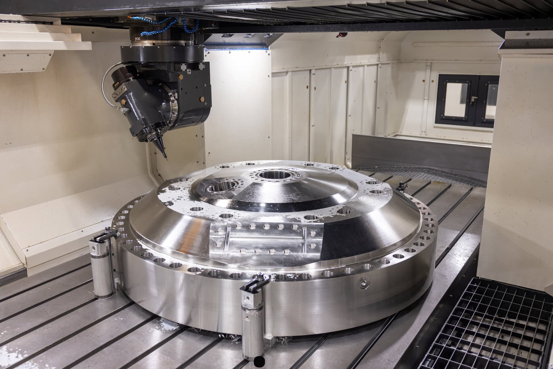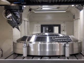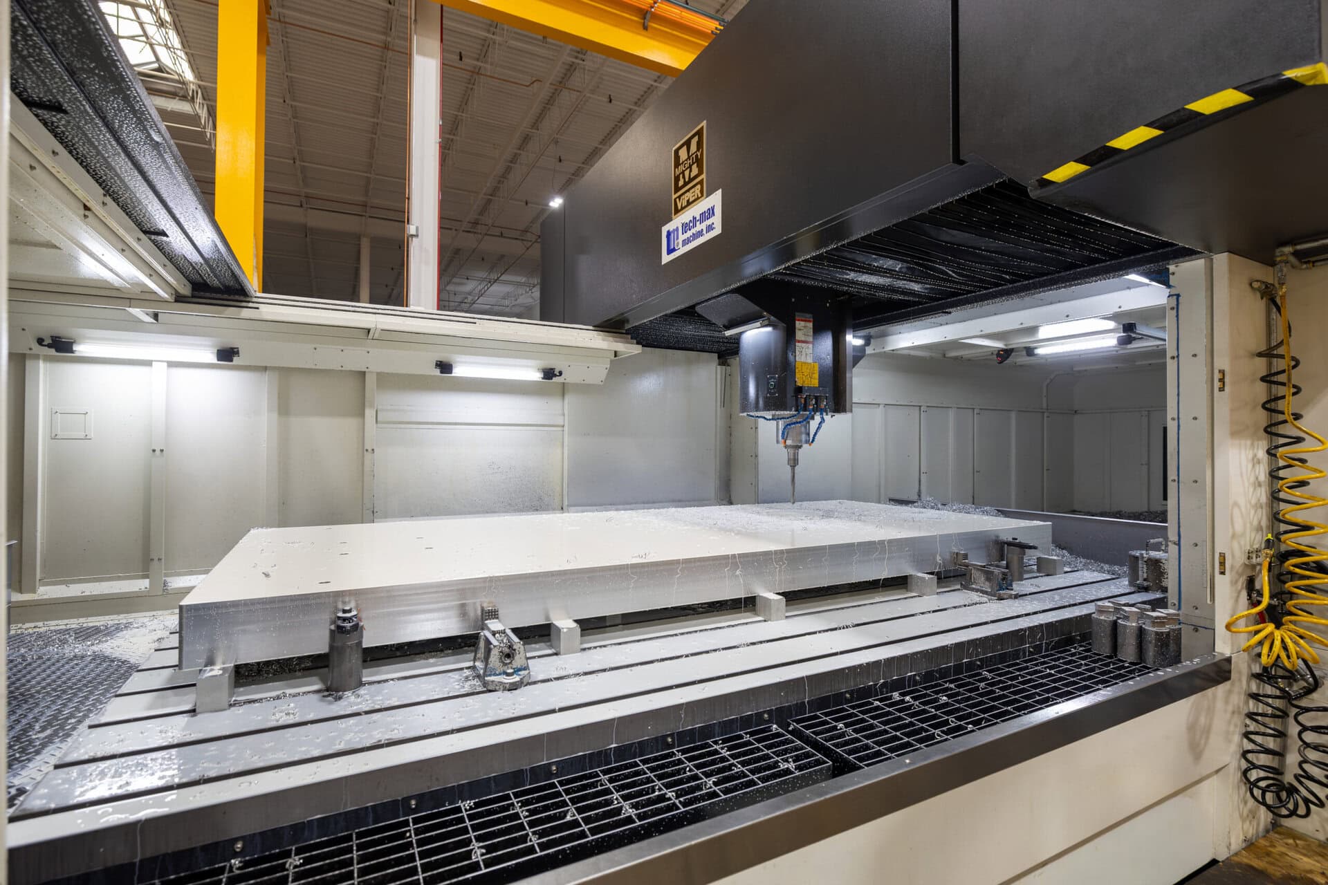 The largest vertical machining table measures 161” long x 106” wide x 43” tall.